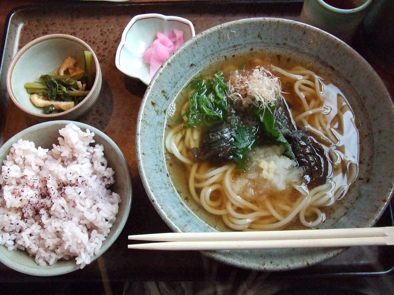 伊晃庵のうどん。なすとお出汁のハーモニーが絶妙です。